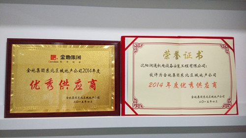 喜賀沈陽潤通機電設備安裝工程有限公司被評為金地集團東北區(qū)域地產(chǎn)公司2014年度優(yōu)秀供應商,這不僅說明潤通得到了市場的認可,更印證了我們的努力是值得的。我們執(zhí)業(yè)以心,為您雕琢傳世精品;我們執(zhí)業(yè)以信,與您攜手共贏!
